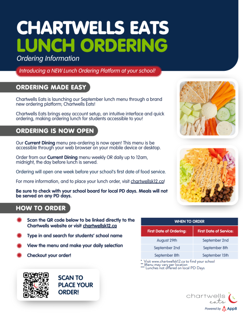 To Order Hot Lunch for your Student please follow this link Hanwell Park Academy – Chartwells K-12 Canada
